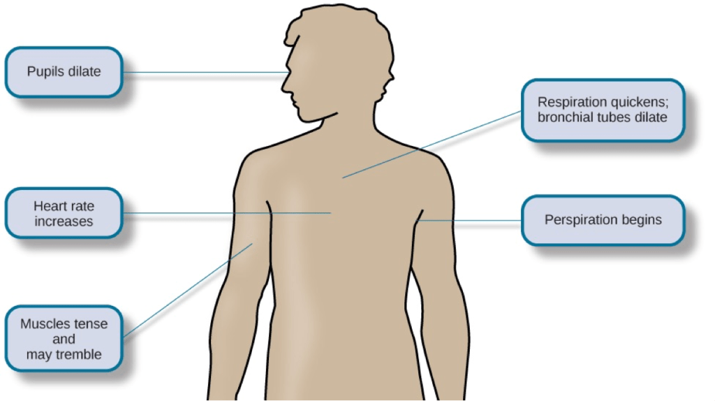 The fight or flight response happens whenever we perceive something stressful. In this response: